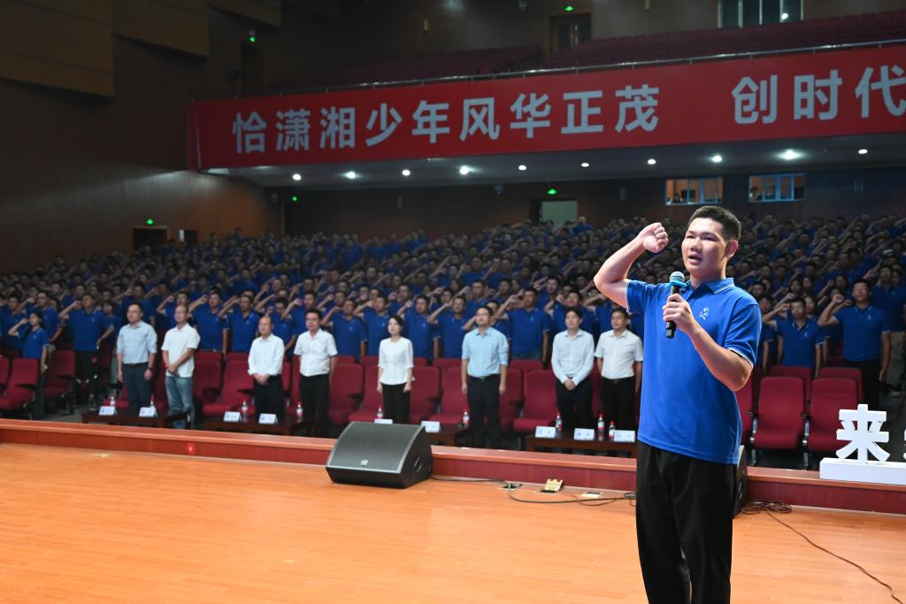 老生代表给排水2202班王俊超结合成长经历分享感悟,以坚定信仰投身党建服务,专注学业科研攻克难题,锤炼综合能力。他勉励新生勇于探索,在实践淬炼中成长。新生代表港航2502班蒋林溪以“以青春为舟,向蔚蓝启航”为主题,表达成为“水利人”的自豪,承诺以扎实学识筑牢治水根基,将个人理想融入国家水利事业,在守护江河湖海中践行青年担当。
