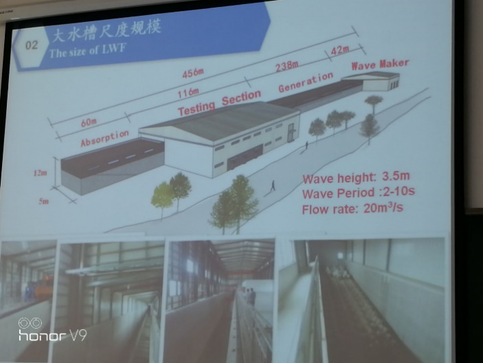 并提出了结合“人工智能”和“大数据”等先进的互联网概念加强行业优势的构想;同时他还强调目前行业内的领军人物越来越年轻化,年轻人应当发挥拼搏的精神才能在本行业有一番作为。接下来陈松贵副研究员对天科院所制造的全球第一的大比尺波浪水槽进行了介绍,为我们展示了该波浪水槽的诞生历程、设计参数及其所具有的性能优势,并对在该水槽中进行的典型的工程实例进行了展示。最后陈汉宝教高作为我院特聘的企业导师,表示热忱地欢迎水利工程学院师生前往天科院进行访问和交流学习。天科院是我院长期以来的研究生联合培养基地,本次学术活动对加强我院师生对于行业动态的了解、提升我院师生对于工程实践的认识、深化我院师生与行业科研和工程单位间的交流与合作等方面均具有积极的意义。