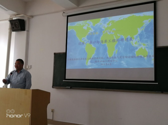 “近岸、港口与海岸工程科研进展”和“天科院大比尺波浪水槽研究应用情况”的学术报告。本次报告由我院姚宇副教授主持,夏波博士、黄筱云博士、刘智光博士、江诗群老师以及相关专业的研究生30余人参加了本次学术活动。