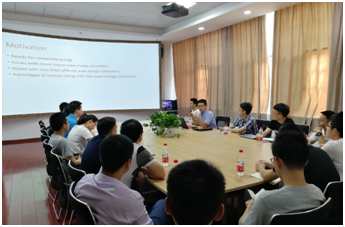 黄振华对其团队提出的一种新型桩基振荡水柱式波能转换装置从理论、实验、和数值模拟三个方面的研究工作做了深入浅出的精彩报告。首先是对其提出的桩基振荡水柱式波能转换装置的结构及其能量转换原理进行了简要介绍;然后介绍了理论研究方面工作,主要是将影响波能转换装置能量转换效率的因素进行参数化,并结合势函数理论进行求解;随后介绍了其团队所开展的相关物理模型实验,通过实验数据对理论模型中的参数进行了校正;最后介绍了数值模拟方面的工作,通过采用计算流体力学方法对物理模型实验中不便测量的物理量的规律进行了分析。
