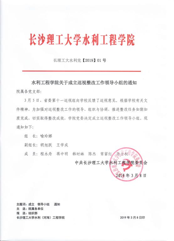 水利工程学院关于成立巡视整改工作领导小组的通知