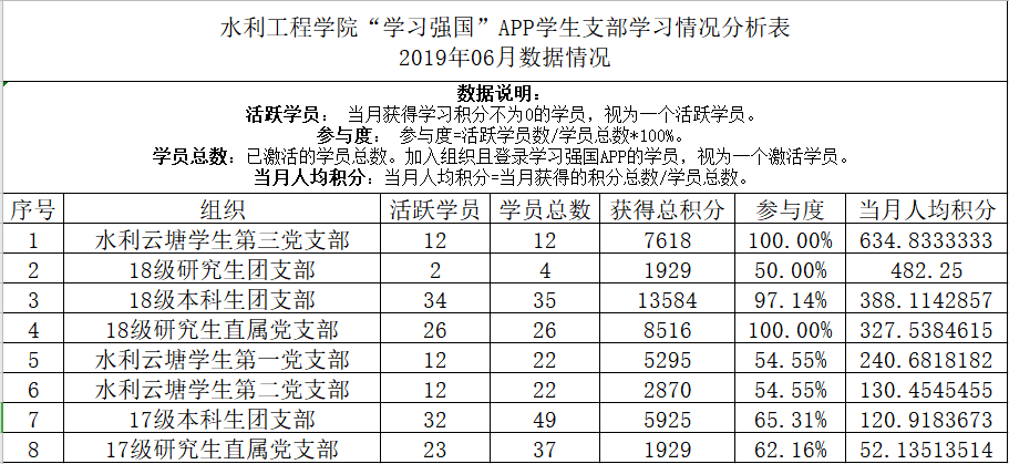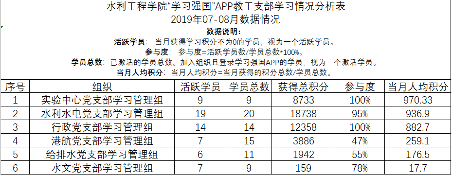 根据学院《关于开展“学习强国”平台月度学习先进个人及先进支部评比的通知》相关要求,7-8月份,我院教工党员学习强国学习“先进个人”为:鲍海艳、陈会芳、明珠、叶红梅、陈杰、禹丽娥;学生党支部、团支部学习强国学习“先进个人”为:张羽涵、熊佳艺、鲁稳杰、李园、王孟飞、王芸清、罗皓予。教工支部学习强国学习“先进集体”为:水利实验中心党支部;学生支部学习强国学习“先进集体”为:水利云塘学生第三党支部。