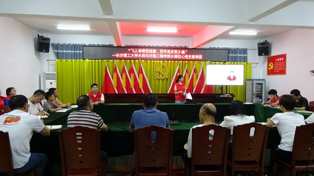 “我们筚路蓝缕,走过了百年征程,我们还要跋山涉水,建设更美的万水千山……”7月18日,在常德市澧县码头铺镇万家岗村,水利与环境工程学院水润初心党史宣讲团在黄远发老师的带领下,联合该村党支部开展“飞入寻常百姓家 百年党史筑红色乡魂”党史宣讲。村党支部书记徐国平、村支部党员等40余人参加活动。