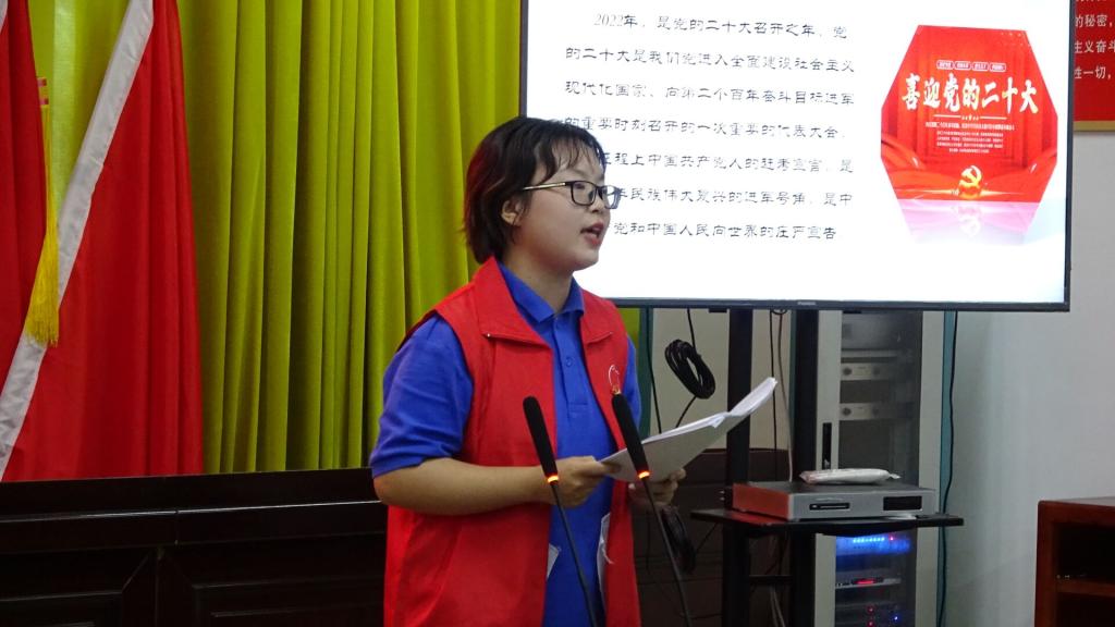 “伟大建党精神是我党的精神之源,是我党团结带领中国人民进行一切奋斗、一切创造的精神动力,也是我党立党、兴党、强党的精神原点和思想基点。”谭茜同学以《百年征程》宣传片引入,在回顾党的百年奋斗重大成就中开宗明义讲述了伟大建党精神的理论渊源与现实意义。她通过例举朱德、黄大发、赵一曼、钱学森以及澧县当地红色名人毕磊、游端轩的先进事迹,阐述了“坚持真理、坚守理想”的深刻内涵,具象出革命先辈和英雄楷模的坚贞品格,凝结为他们历经沧桑而初心不改、饱经风霜而本色依旧的赤子深情。她坚信在村支书和乡村振兴工作队的模范引领下,伟大建党精神一定能够在万家岗村薪火相传,开创出更加美丽幸福的新农村。