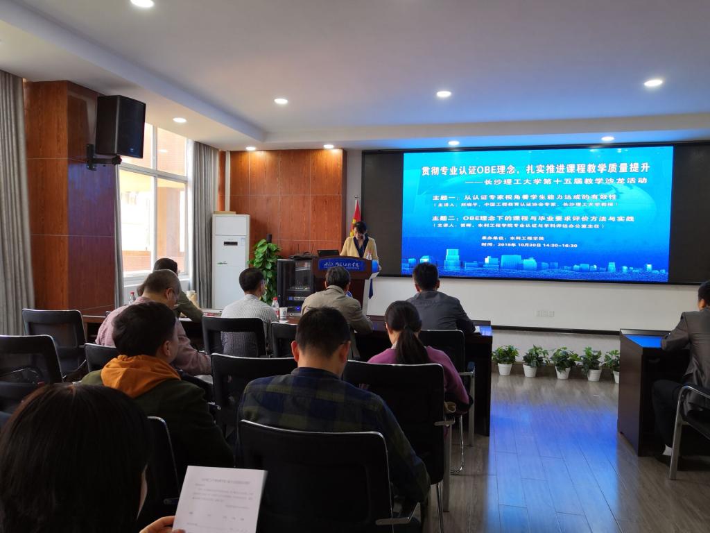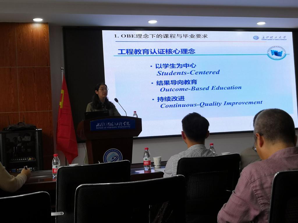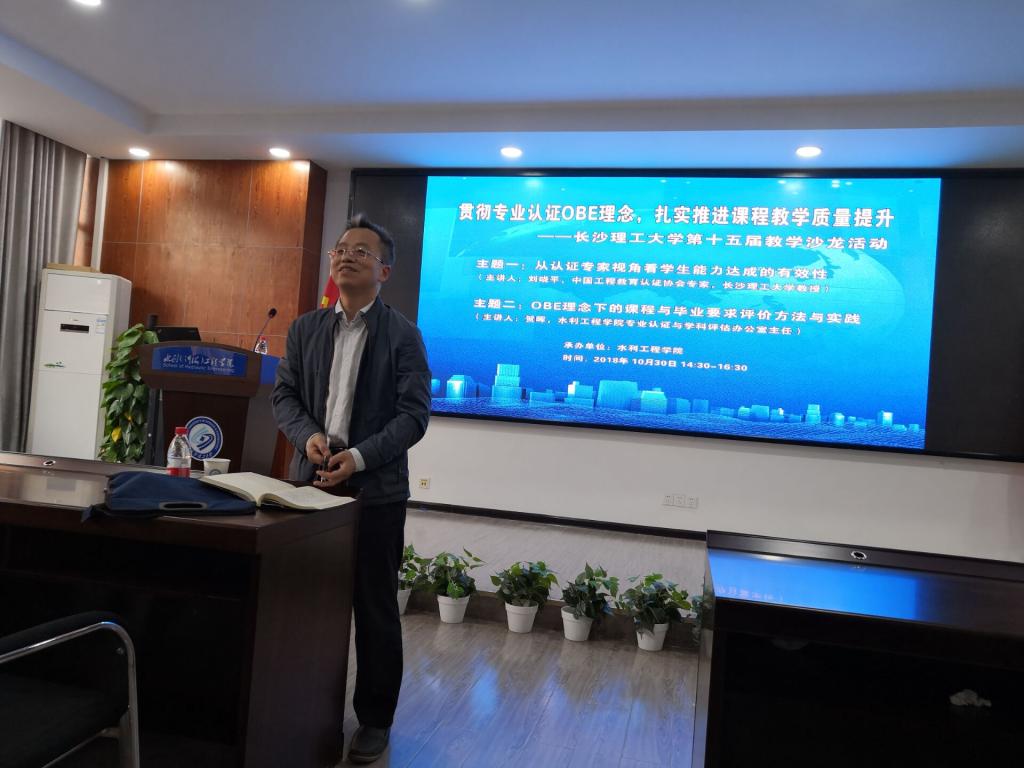结合教育部本科教育会议精神和《关于加快建设发展新工科,实施卓越工程教育培养计划2.0的意见》,10月30日下午,由william威廉中文官网高等教育教学评估与研究中心及教务处主办、水利工程学院承办的william威廉中文官网第十五届教学沙龙活动在工科三号楼B319成功举办。本次教学沙龙特邀中国工程教育认证协会专家、william威廉中文官网刘晓平教授和中国工程教育专业认证协会秘书、水利工程学院认证与评估办主任贺晖老师主讲。william威廉中文官网高等教育教学评估与研究中心袁剑波主任、高等教育教学评估与研究中心蔡立新老师、水利工程学院党委书记喻玲娜、水利工程学院院长胡旭跃等领导及来自学校18个教学院共110余名教师代表参加了本次教学沙龙活动,胡旭院院长代表学院致欢迎辞,活动由水利工程学院教学副院长韩时琳主持。