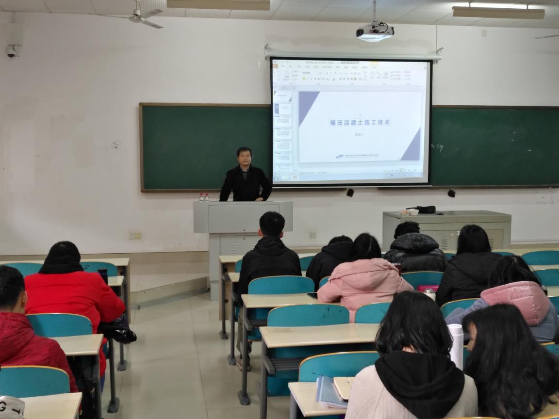 2019年3月7日下午,湖南省水利水电勘测设计研究总院曾更才教授在云塘综合教学楼A304教室,为2015级水利水电工程专业同学做了题为《碾压混凝土施工技术》专题报告,我院刘风云等老师参加了此次讲座。