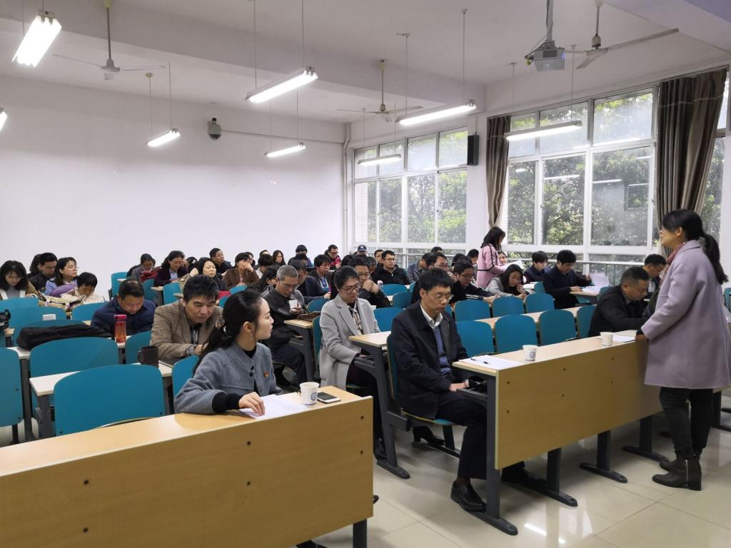 为深入贯彻落实新时代全国高等学校本科教育工作会议精神,正风铸魂立德树人,全面提升教职工素质,推动课堂教学改革,提高教师教学技能和教学水平,广泛开展教学经验交流,共同研究、探索教学方法和手段,4月2日下午,我院教务办和院工会联合举办了2019年本科生教学公开示范课暨教学竞赛。活动由教学副院长韩时琳主持,并邀请了丁新求、沈小雄、黄伦超等督导组专家参加。院党委书记喻玲娜、院长胡旭跃、院工会主席陈杰、副院长蒋中明及全院教师共90多人参加了此次活动。