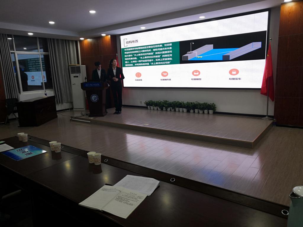 本次大赛全校共有18支队伍报名,130多名师生参加了比赛。各参赛代表队通过作品介绍、现场答辩和实物模型展示等环节展开了角逐。经过大赛评审委员会评选。最终评出校级获奖作品共12项。刘力侨等同学申报的作品“自动式河道漂浮污物清理装置”和陈林涛等同学申报的作品“疏浚工程防细颗粒扩散气幕帘”获校级一等奖。