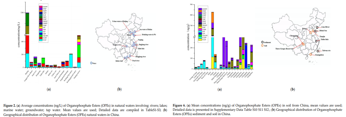 有机磷酸酯Organophosphate esters (OPEs) 被广泛用作阻燃剂和增塑剂,它们在使用过程中不可避免地被释放到各种环境介质中。本文综述了OPEs在我国各种环境中的赋存和分布情况。研究表明不同环境介质之间的有机磷酸酯的浓度差异很大。除了水体、沉积物、土壤外,空气和生物体内也检测到了OPEs的存在。平均来看,中国水体、沉积物、粉尘和空气中的OPEs水平处于较低水平,但部分特殊环境下,例如电子废物车间的灰尘受到有机磷酸酯的污染较为严重。人类通过皮肤接触、呼吸和饮食等方式暴露在有机磷酸酯的环境中。OPEs需要规范建立统一的标准来对其进行更好研究和调查,反映不同微环境中的污染水平及对人类健康(尤其是儿童)的潜在影响。本文还展望了有机磷酸酯未来的研究挑战和前景。该工作属于湖南省大学生创新创业训练计划项目(No.S2021105360034)的组成部分。