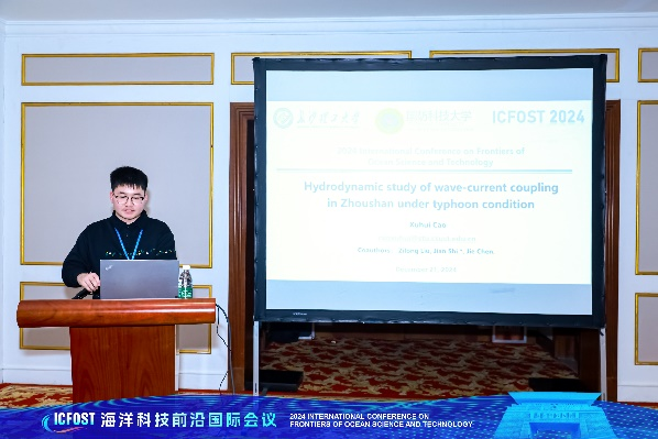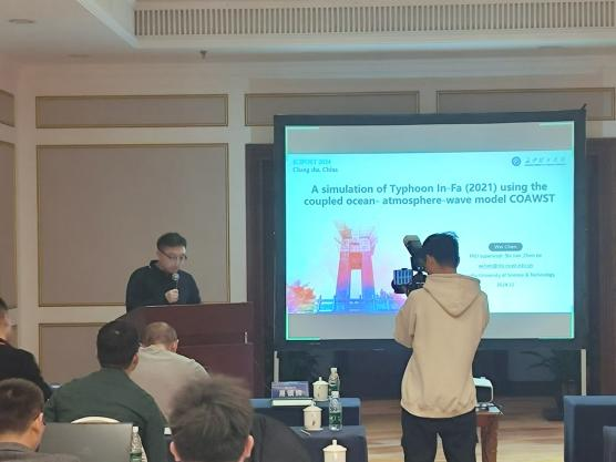 会议期间,我院研究生积极参与线上会议,学习到多种新技术在处理海洋科学问题中的应用,并就自己的研究工作与科研问题等同与会专家学者线上进行交流探讨,收益颇多。其中,我院硕士研究生曹旭辉做了题为“Hydrodynamic study of wave in Zhoushan current coupling under typhoon condition”的学术报告,硕士研究生陈维做了题为“A simulation of Typhoon In-Fa (2021) using the coupled ocean- atmosphere-wave model COAWST”的学术报告。