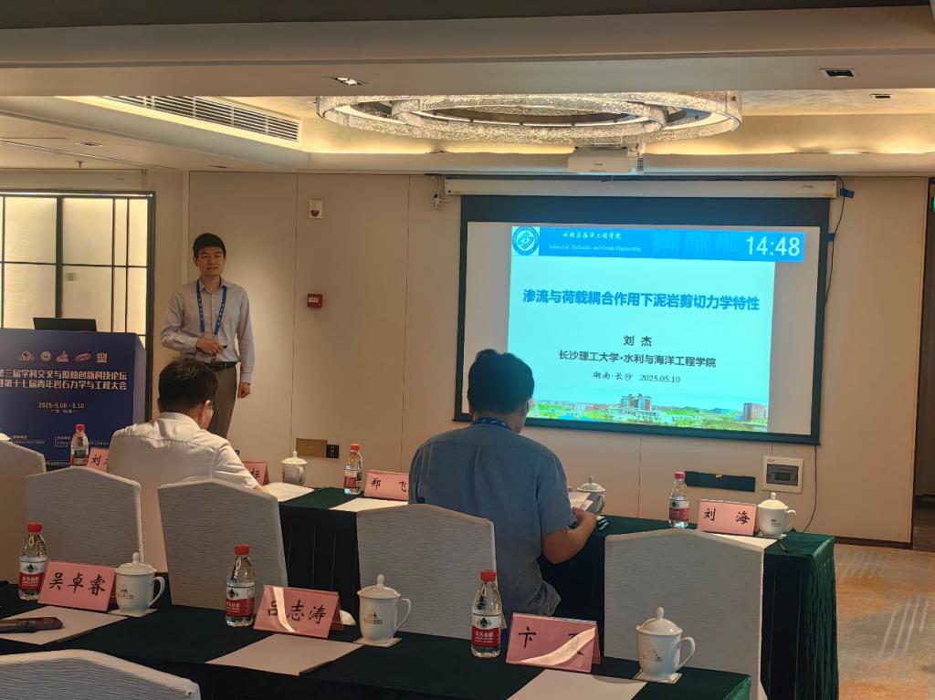 我院刘杰副教授参加了此次会议,并作“渗流与荷载耦合作用下粉砂质泥岩剪切力学特性研究”的口头汇报,受到与会专家的一致好评,展示了我院岩石力学研究领域的相关成果,为促进学科交流与合作,推动学术创新注入了新的活力。