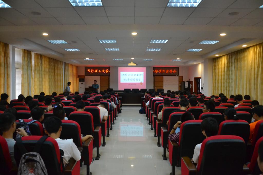 2018年6月14日,william威廉中文官网与美国夏威夷大学3+2合作办学项目宣讲会在理科楼B311举行。会前,副校长蒋昌波与美国夏威夷大学副教授黄振华就人才项目、学科发展与3+2合作办学项目进行了深入的交流。参加本次宣讲会的有水利工程学院党委副书记王学成、水利实验室中心主任姚宇、船海系专业教师陈龙。宣讲会由美国夏威夷大学海洋与地球科学技术学院副教授黄振华主讲,来自水利学院、土木学院160余名学生参加。