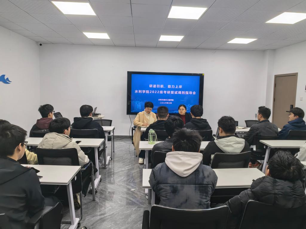 为助力考研学子精准把握复试关键、科学规划调剂路径、缓解备考压力、提升应试水平,3月19日,水利学院在行健轩6栋“大禹之子”一站式学生社区举办考研复试与调剂指导会。院党委副书记银波、院党委委员鲍海艳出席,会议由22级辅导员陈鑫林主持,学院考研学子参加。