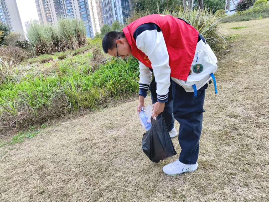 活动现场热火朝天,处处可见同学们忙碌的身影。他们或蹲在草丛中夹取落叶下的塑料瓶,或踮起脚尖取下树枝上挂着的塑料袋,更有同学主动协助体力较弱的伙伴搬运沉重的垃圾袋。经过两个小时的辛勤劳作,一个个垃圾袋变得鼓鼓囊囊,原本散落杂物的区域焕然一新,重现整洁有序的面貌。