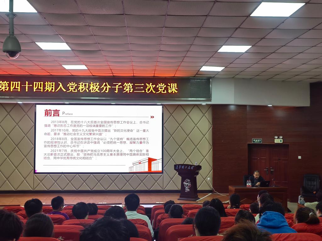 11月3日晚,水利学院分党校在云塘校区文科楼A200举行第44期入党积极分子培训班第三课《习近平新时代中国特色社会主义思想专题》,本次课程由马克思主义学院余乃忠老师主讲。