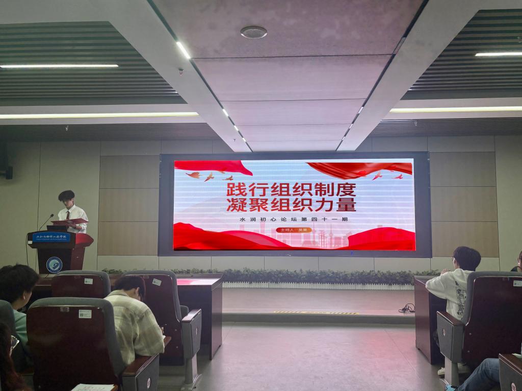 4月7日晚,水利学院在新能源一栋二楼会议室举办第四十一期“水润初心”学习论坛活动,主题为“践行组织制度,凝聚组织力量”。本次活动由吴昊同志主持,53名同志参加学习。