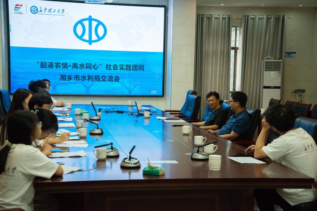 近日,水利学院“韶灌农情·‘禹’水同心”全国绿色长征科考实践团与湘乡市水利局相关负责人座谈交流,深入了解农田水利新发展格局、支渠灌溉排水现况、基础水利设施维护与日常巡查制度等。