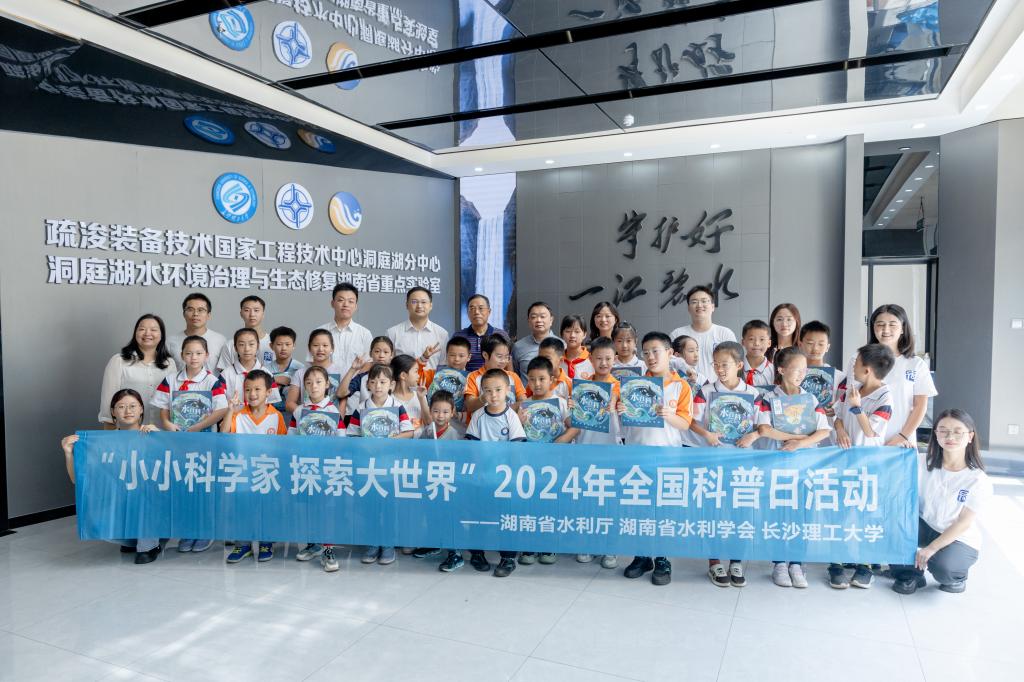 在2024年全国科普日到来之际,为增强全民节水护水的意识,培养学生的科学思维和创新能力,9月22日上午,水利学院在洞庭湖水环境治理与生态修复湖南省重点实验室开展“小小科学家,探索大世界”2024年全国科普日活动。湖南省水利厅一级调研员刘慎柏、湖南省水利水电科学研究院党委委员、纪委书记、副院长李浩文、水利学院院长陈杰以及来自青园中信小学、长郡雨花外国语学校、长郡雨花外国语二附小的近30余名小学生和家长参加本次活动。
