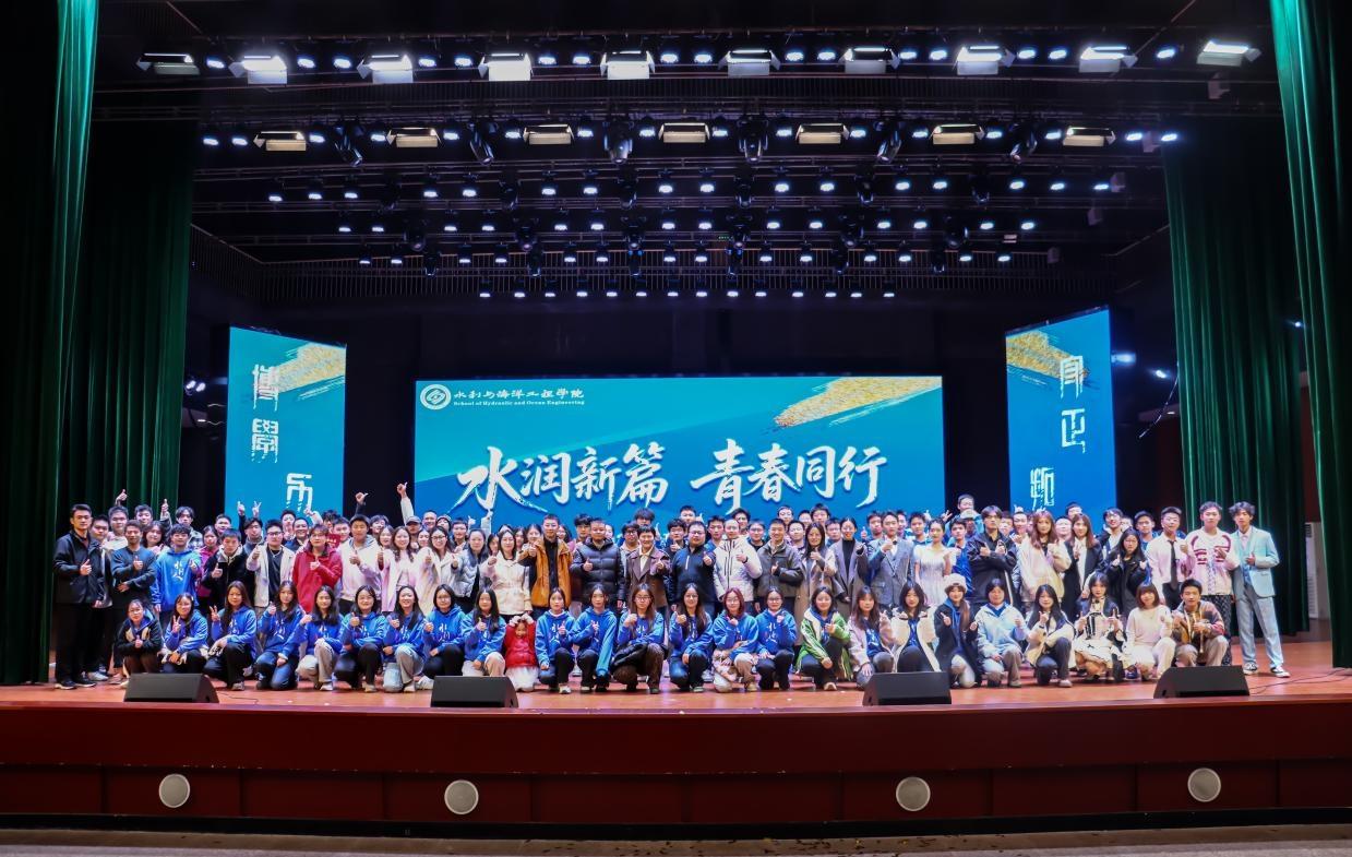 12月14日晚,水利学院在云塘校区大会堂举行“水润新篇,青春同行”2025级新生班级文化节。学院党委副书记银波、2025级班主任、学工办辅导员、2025级下班党员、团干代表以及2025级全体新生欢聚一堂,共同欣赏本次演出。