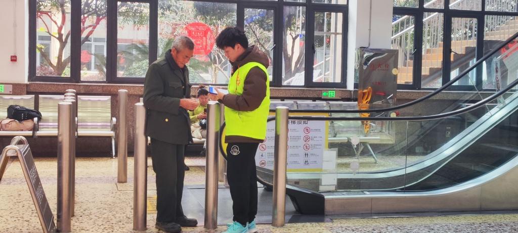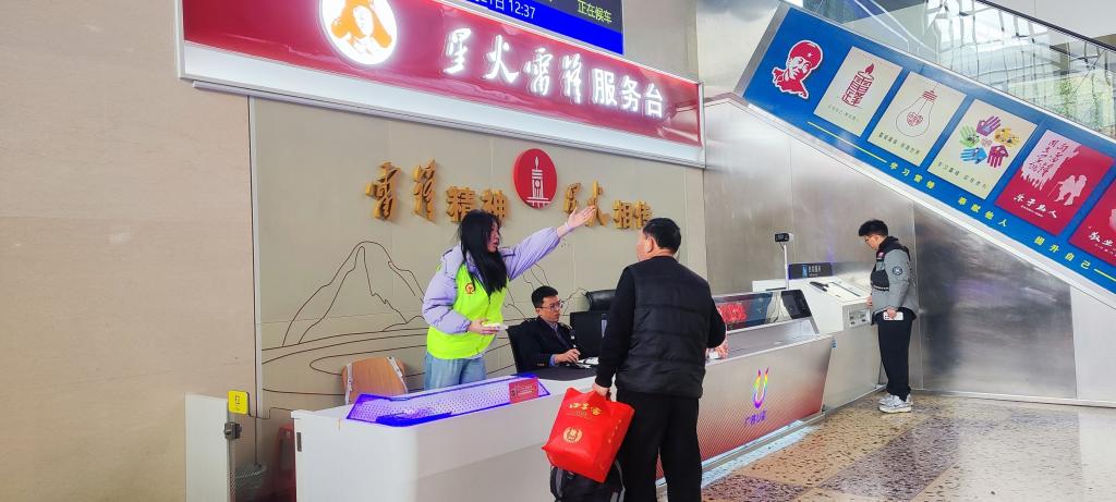 本次活动共招募14名青年志愿者,在完成培训后正式上岗,重点驻守于车站闸机口、星火雷锋服务台、候车换乘口等关键点位。志愿者们以真诚友善的态度穿梭在客流之中,俯身引导旅客进站、耐心解答票务疑问、细致提醒扶梯安全,用脚步丈量责任,以耐心化解难题,为往来旅客排忧解难,让温暖身影遍布车站每一处角落。