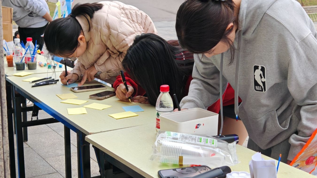 此次活动以新颖而又温馨的形式展开,学弟学妹们将自己想对马上毕业的学长学姐们的感激和美好祝愿一一写在了便利贴上,随后将其细致地贴在精心设计的易拉宝上。这些话语不仅传达了学弟学妹对学长学姐们过去的无私奉献与热切关心的感激,更加饱含了对学长学姐们美好前程的祝福。