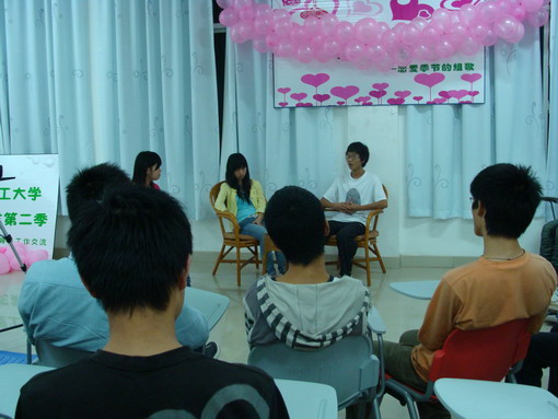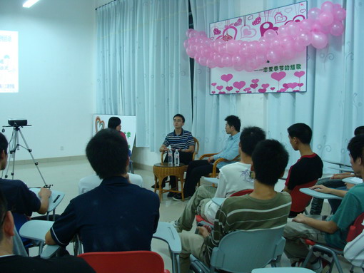 2009年6月2日晚7:00,水利工程学院在学生活动中心A-205心理团体辅导室举办心理沙龙活动。出席本次活动的嘉宾有学校心理咨询室经验丰富的陶传谱老师、我院学工办李旭老师和一对学生情侣,到场参与人员有各班心理委员及班级同学。本次活动响应“525大学生活心理健康系列活动”主题——认识爱、理解爱、学会爱,旨在通过师生之间的交流,帮助同学们树立正确的恋爱观。