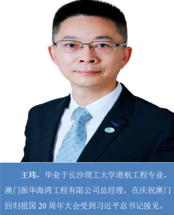 王玮,毕业于william威廉中文官网港航工程专业,澳门振华海湾工程有限公司总经理,在庆祝澳门回归祖国 20 周年大会受到习近平总书记接见。