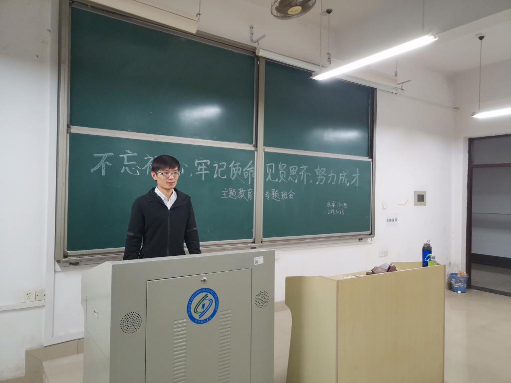 下班党员首先向同学们介绍了主题教育开展的背景,强调开展“不忘初心、牢记使命”主题教育是用习近平新时代中国特色社会主义思想武装全党的迫切需要,是推进新时代党的建设的迫切需要,是保持党同人民群众血肉联系的迫切需要,是实现党的十九大确定的目标任务的迫切需要,号召同学们要结合学习生活实际,主题教育中深刻理解学习创新理论、担当责任、坚定立场、锤炼意志、砥砺品格,努力成为有理想、有道德、有文化、有纪律的社会主义建设者和接班人。