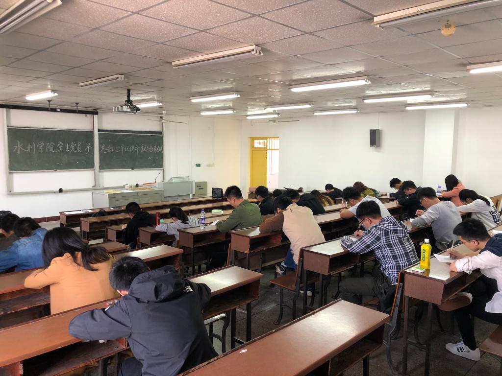 为深入推进“不忘初心、牢记使命”主题教育,检验前期学习教育成效,推动学习贯彻习近平新时代中国特色社会主义思想往深里走、往心里走、往实里走,水利工程学院学生党总支于11月4日中午在云塘校区工科三号楼A307以及金盆岭校区四教410组织全体学生党员进行了主题教育理论考试。