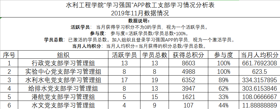 通过比对11月1日及12月2日两个日期每个支部党员在“学习强国”平台上的学习分数,得出了11月份我院党员的学习情况,现将评比结果通报如下。