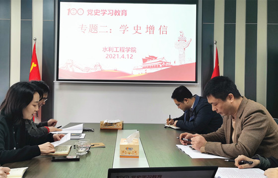 4月12日下午,水利工程学院党委中心组在工三B446举行党史学习教育第二专题“学史增信”集中学习。