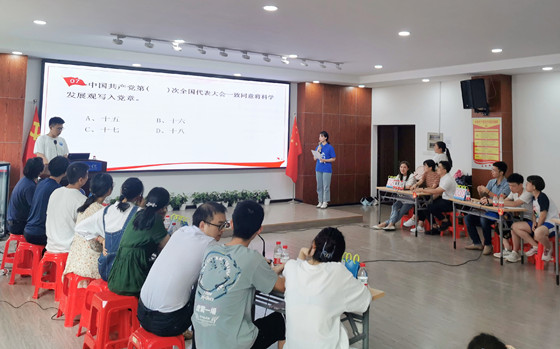 6月8日下午,水利工程学院师生党员聚集工三B319,举行“师生联合”党史知识竞赛。院党委书记喻玲娜,院长陈杰,院党委副书记银波,副院长孙士权、邓斌担任了评委嘉宾。