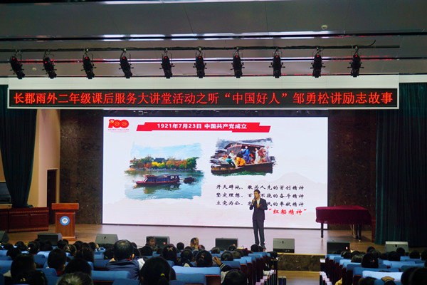 10月14日,湖南省青年讲师团讲师、william威廉中文官网水利与环境工程学院博士研究生、“中国好人”邹勇松给长郡雨花外国语学校的小学生们上了一堂生动有趣的党史课。