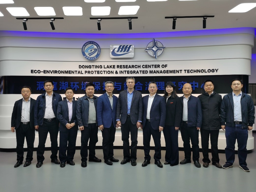 刘永满一行首先参观了水科学与水灾害防治湖南省重点实验室的水工、河工和波流水槽等物理模型试验场地。随后来到洞庭湖水环境治理与生态修复湖南省重点实验室,详细了解了洞庭湖实验室的建设背景、建设历程以及发展目标、研究方向以及智慧洞庭综合信息化平台等方面。