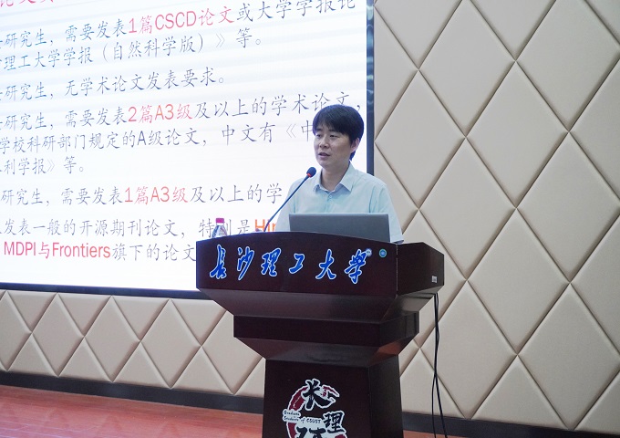 同时,他为同学们解读了高水平学术论文及会议资助办法,强调要恪守学术道德与学术规范,坚守学术诚信,努力提升学术能力,为新时代的发展贡献力量。他祝福新生们在未来的道路上不畏坦途,始终怀揣求知的渴望,在长理收获累累硕果。
