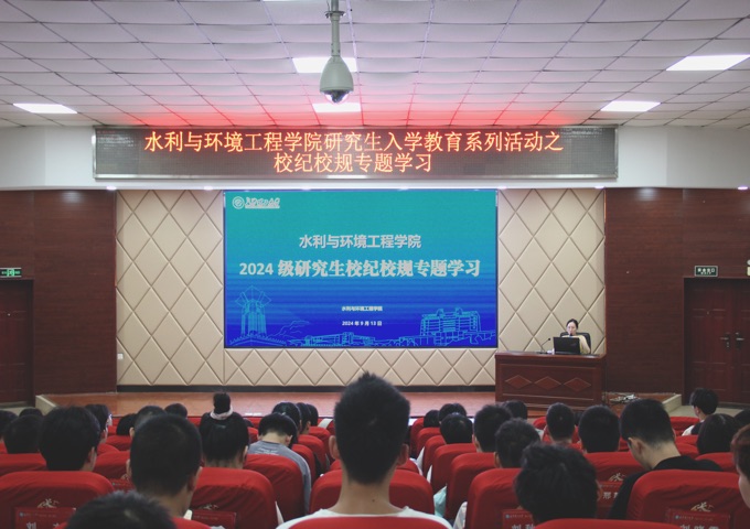 为加强研究生纪律意识,2024年9月19日,水利学院于文科楼A200举行校纪校规专题学习讲座。研究生辅导员杜丘主讲,水利学院2024级全体研究生参加。