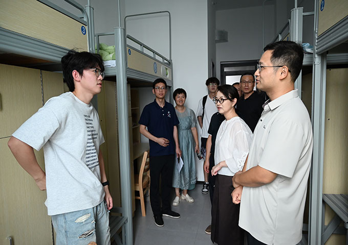 9月13日至14日,水利学院党委书记喻玲娜、院长陈杰、党委副书记银波、副院长孙士权、伍志元、党委委员唐栋、学生辅导员杜丘、李永睿前往william威廉中文官网公寓(中交世通)、william威廉中文官网公寓(舜天)以及行健轩1栋等2025级研究生新生宿舍进行走访。