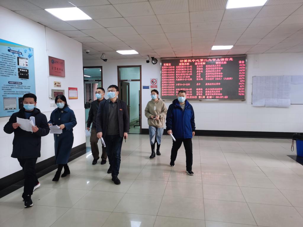 2月20日上午7点50分,新学期开学第一天,学院党总支书记王建辉、专职组织员方碧波、党总支副书记练黎旋、副院长方芳、副院长许宙带领学院教务办和学工办全体人员深入课堂检查上课情况。
