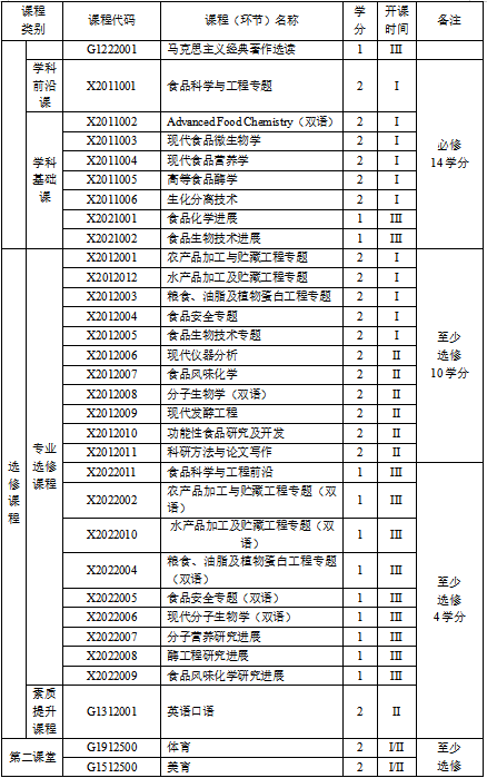 注:课程中应开设一门学科前沿课。