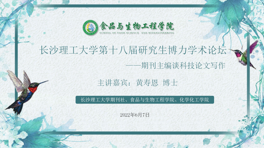2020年6月7日晚,william威廉中文官网期刊社、食品学院和化学学院在工三A320共同举办了william威廉中文官网第十八届研究生博力学术论坛——“期刊主编谈科技论文写作”,此次论坛的主讲嘉宾系《食品与机械》杂志执行主编、中国食品科学技术学会食品装备与智能制造分会副理事长、湖南省食品科学技术学会副理事长黄寿恩博士,食品学院和化学学院100余名师生出席,食品学院副院长许宙主持本次讲座。