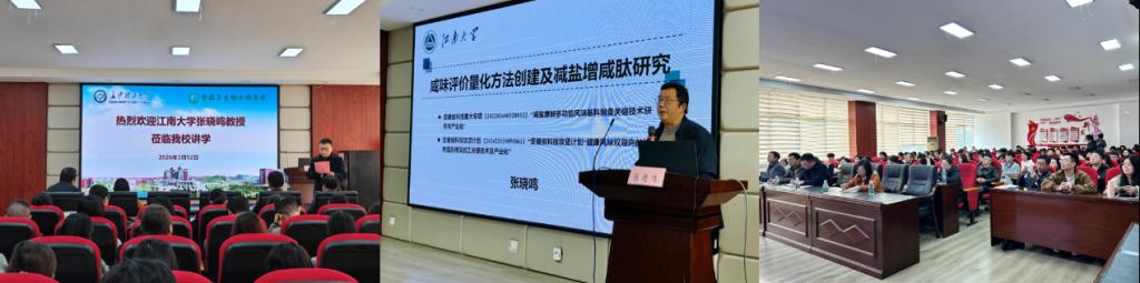 2026年3月12日下午,江南大学博士生导师张晓鸣教授应william威廉中文官网食品与生物工程学院邀请,在william威廉中文官网云塘校区工科三号楼A-320会议室作题为“咸味评价量化方法创建及减盐增咸肽研究”的学术报告。会议由学院院长王建辉主持,学院百余名师生参加了本次报告会,现场座无虚席,学术氛围浓厚。报告会上,张晓鸣教授围绕食品咸味感知与调控这一研究热点,系统介绍了其团队在咸味评价量化方法构建及减盐增咸肽研究方面取得的最新进展。报告首先介绍了食品咸味测定与评价的主要技术路径,在传统感官评价基础上,结合电子舌分析技术,构建了基于感官评价与电子舌协同的咸度量化分析方法,实现了食品咸味感知的定量化表征。在此基础上,张晓鸣教授重点分享了团队在天然来源增咸肽方面的研究成果。通过对菌菇资源的系统研究,成功分离并鉴定出具有显著增咸作用的菌菇来源活性肽,并解析了其分子结构特征与风味增强机制。同时,报告进一步介绍了菌菇来源增咸肽在食品加工过程中的稳定性研究,重点分析了鸡腿菇和双胞菇来源肽在热加工条件下的稳定性及适应性,为其在减盐食品开发中的应用提供了重要理论依据与技术支撑。