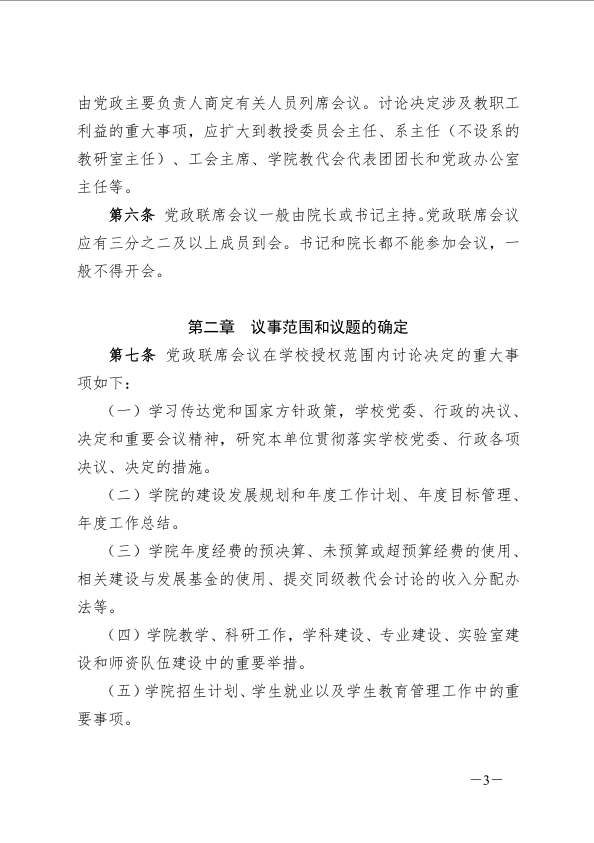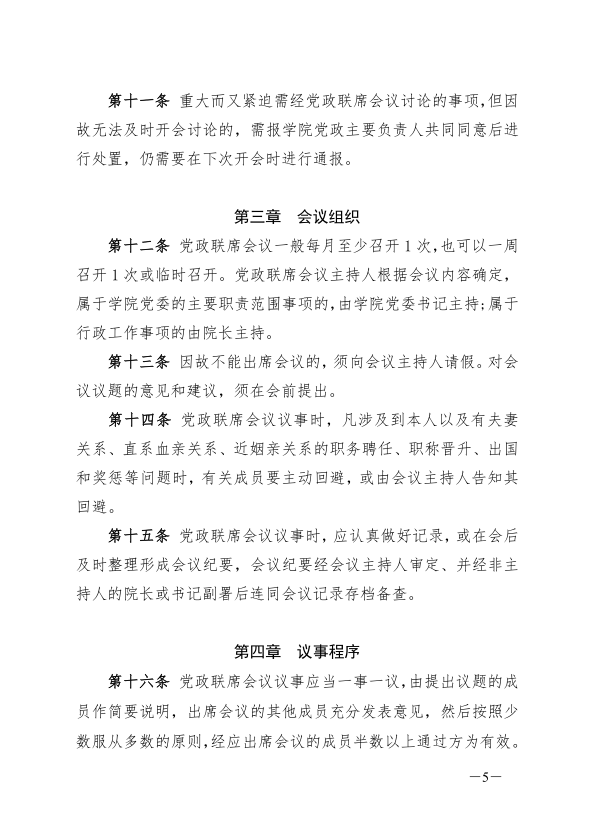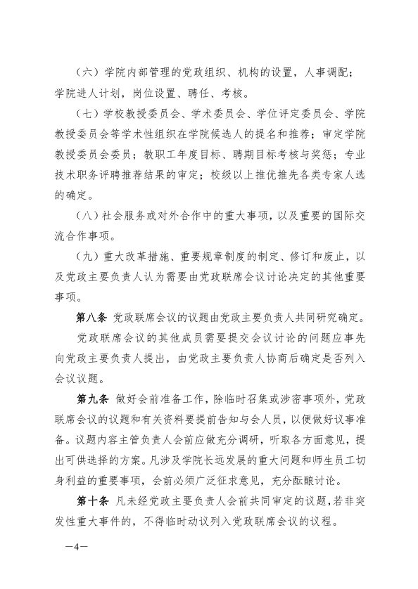 关于印发《william威廉中文官网学院党政联席会议议事规则》的通知