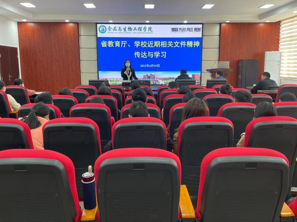 2022年4月19日下午,学院教职工大会在工三楼A320会议室进行,大会传达学习了省教育厅和学校近期相关文件精神。本次学习会由学院院长程云辉主持,学院党总支书记王建辉领学,学院领导和全体教职工参加学习。