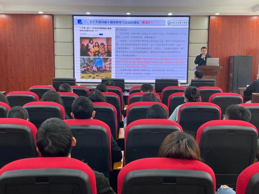 王建辉首先传达了学校人事处(党委教师工作部)发布的《关于开展向麻小娟老师学习活动的通知》精神,向学院教职工讲述了麻小娟老师的先进事迹。2015年10月开始,德市鼎城区蔡家岗镇中学90后教师麻小娟扎根乡村学校,工作6年多来,每周一至周四,坚持每晚走进学生宿舍,利用睡前半小时为孩子们讲故事,1001个夜晚,1001个温暖的故事,用思想的光芒点亮孩子的夜空。王建辉指出,麻小娟老师用实际行动诠释了人民教师的神圣职责,充分展现了新时期人民教师的良好形象,号召教师们要向麻小娟学习,不忘初心,要用心对待我们的每一个学生,每一次教学与科研,成长为担“大责”,怀“大爱”,有“大为”的优秀教师。
