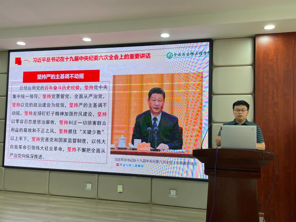 王建辉领学了习近平总书记在十九届中央纪委六次全会上的重要讲话精神、中央纪委书记赵乐际在湖南考察时的重要讲话精神,同时传达学习了校党委付宏渊书记题为《始终坚持严的主基调,推进伟大自我革命,以全面从严治党新成效引领保障学校高质量发展》报告内容。付宏渊在报告中强调,全校要坚持以习近平新时代中国特色社会主义思想为指导,坚持全面从严、勇于自我革命,把学校全面从严治党工作向纵深推进,为学校“十四五”时期高质量发展提供坚强政治保障,以全面从严治党新成效迎接党的二十大的胜利召开。