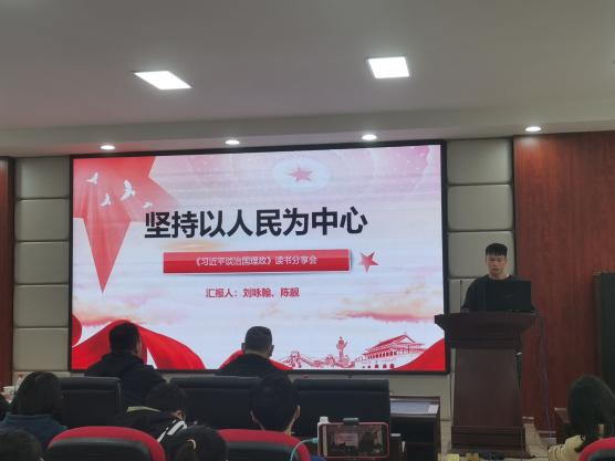 读书班学员马梦可及周君分享了“完善和发展我国国家制度和治理体系”专题的学习成果。两位同志分别从前苏联制度建设和治理体系的经验教训,和新中国成立以来的“两大奇迹”——经济快速发展、社会长期稳定两大奇迹出发,向大家阐述了我们为什么要推进国家治理体系和治理能力现代化,和青年学生该如何为推进国家治理体系和治理能力现代化贡献自己的力量。