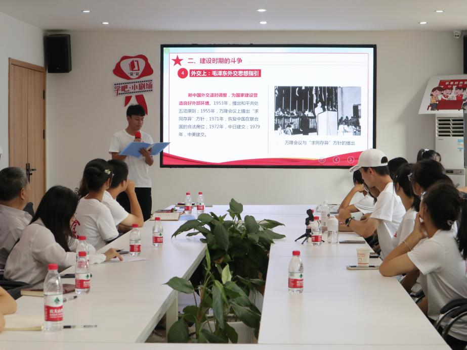 随后,在场师生对《习近平谈治国理政》进行了集中学习。本科生食品党支部王丹、胡欣彤饱含深情地朗诵诗歌《你从梁家河走来》,歌颂青年一代心中的梁家河;袁芬主持开展党史知识竞答赛,检验巩固党史学习成果;谢新阳、贺芸和魏倩倩分别以《习近平谈治国理政》中“坚持敢于斗争”和“以伟大自我革命引领伟大社会革命”两个专题进行了精彩的分享。