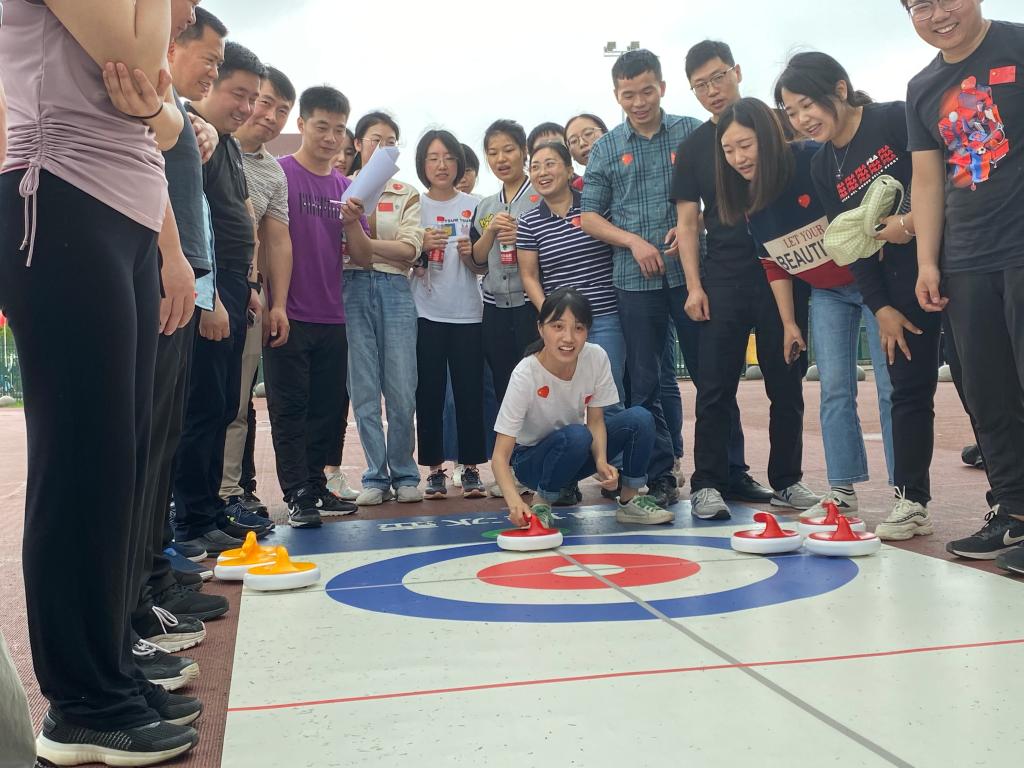 本次趣味运动会设有鸿运彩球、陆地冰壶、携手同行、趣味连体裤、三方拔河五个比赛项目,全校共有26支队伍参赛。我院教师积极参与不同项目,在比赛中充满了欢声笑语,增强了大家的交流和凝聚力。尽管下着小雨,但老师们的热情丝毫不减,脸上洋溢着青春与热情,大家互相鼓励、相互帮助,在比赛过程中积极配合,团结合作,力争佳绩,最终取得了不错的成绩,其中趣味连体裤取得第四名的好成绩,携手同行名列第十,充分展示了我院蓬勃的活力与积极向上的精神风貌。