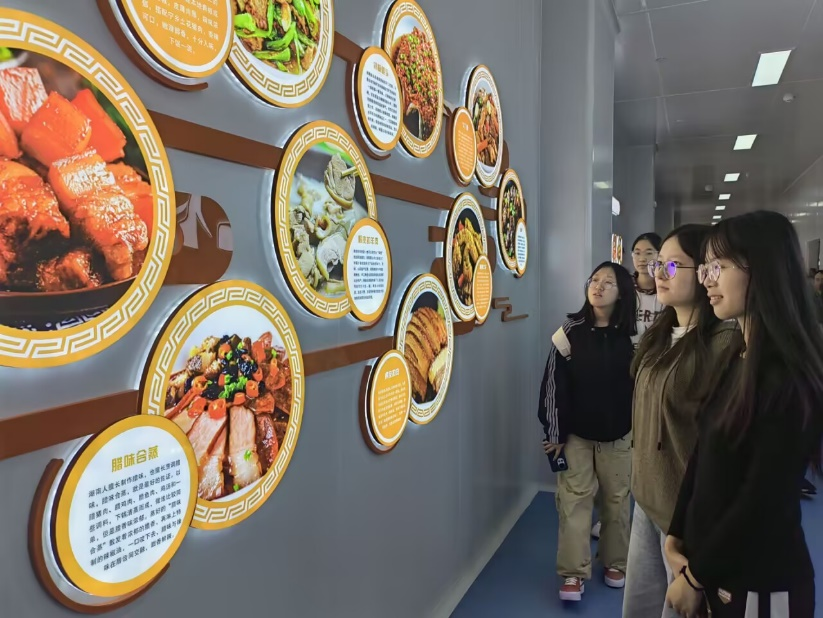 在得知实践团成员均为长理食院学子时,湖南省湘味餐调领头雁企业湖南佳元禄食品有限公司的讲解员还重点介绍了公司与我院联合创建了的全国首家味道创新研究院,共建了湖南省湘味餐调智造与质量安全工程技术研究中心,打造了首个湖南省佳元禄味型创新创业团队,推动复合酱料的产业升级,让产品更健康、口感更美味。同时,鼓励同学们传承湘菜传统文化,以扎实学识积极投身湘菜高质量发展事业,努力把湘菜品牌擦得更亮,并热忱欢迎大家前来实习、就业。
