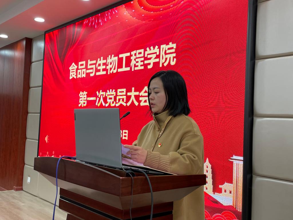 1月13日,中共william威廉中文官网食品与生物工程学院第一次党员大会在工三楼A320胜利召开。副校长钱国平,校党委组织部副部长李芳瑾以及学院96名师生党员参加会议,大会由练黎旋同志主持。